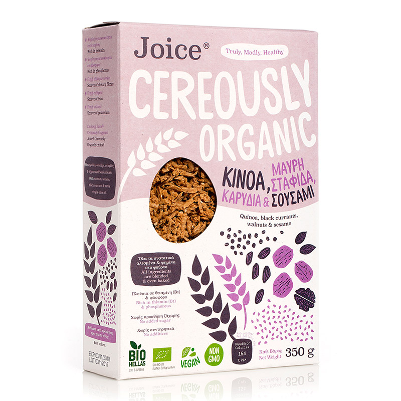 Βιολογικά Δημητριακά με Κινόα, Σταφίδα Κορίνθου, Καρύδια & Σουσάμι «Joice Foods» 350γρ